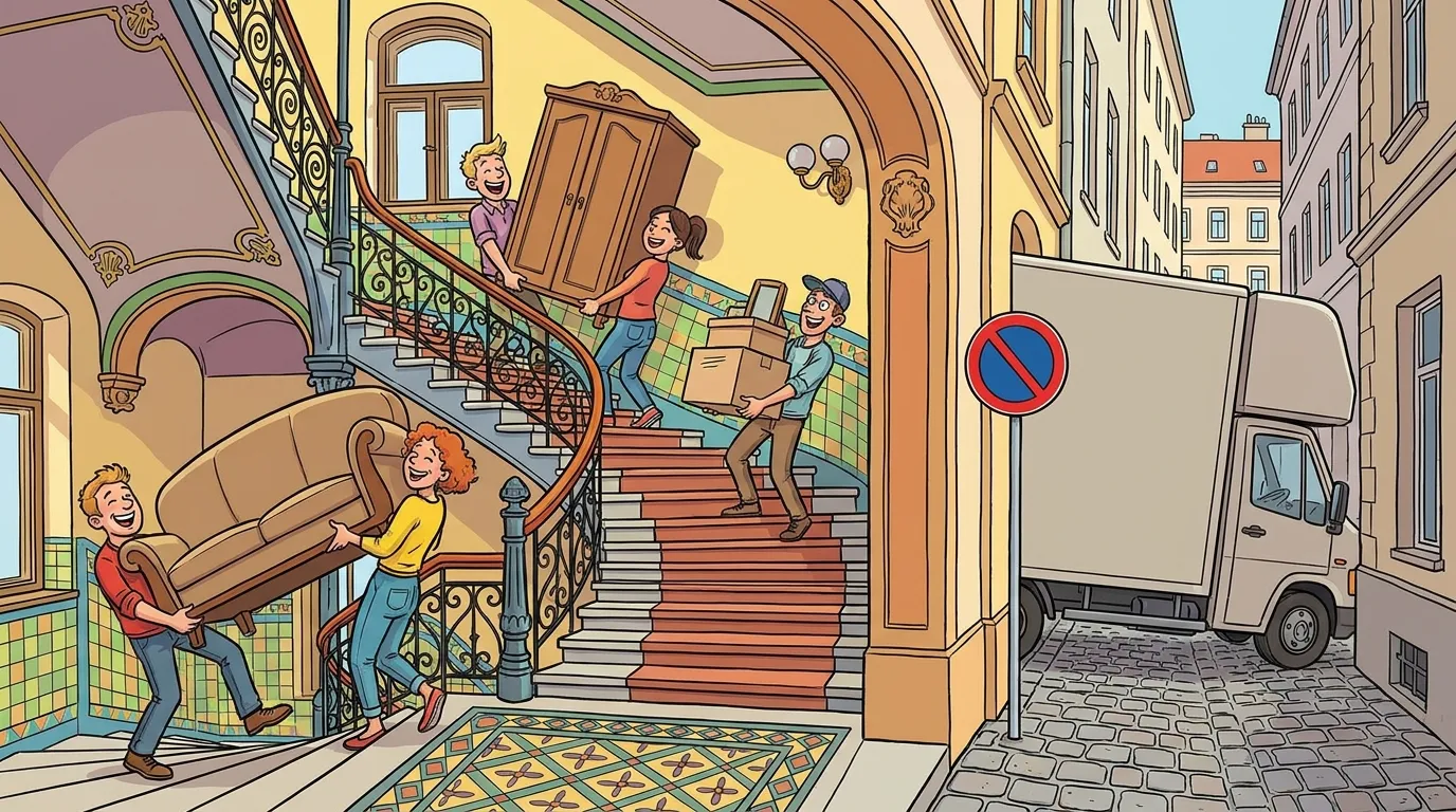 Ein Altbau im 3. Bezirk fühlt sich anders an als einer im 9. Bezirk. Unterschiedliche Stockwerke, schmale Wendeltreppen oder Stufen im Stiegenhaus verändern den Aufwand. Ein Kasten passt rechnerisch durch, bleibt aber an der letzten Kurve hängen. Solche Momente kosten Zeit und Kraft.